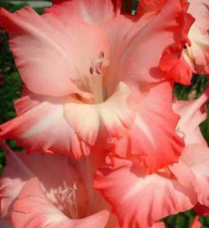 - Гладіолус Пінк Леді – червоно-білі квіти, які притаманні цьому сорту, складно не помітити