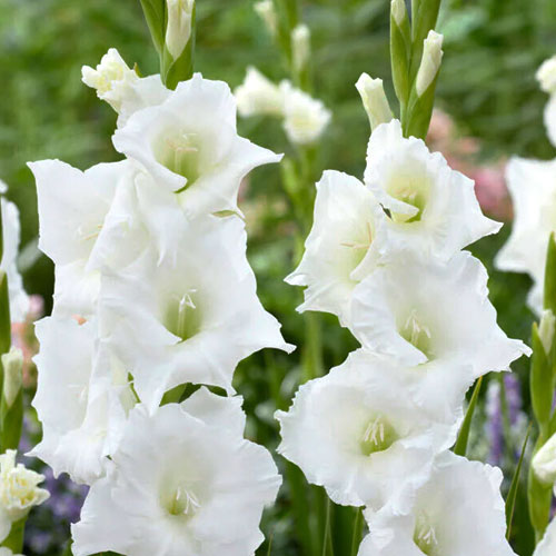 Гладіолус Нова зембла (Gladiolus Nova Zembla). елегантний великоквітковий сорт із чисто-білими квітками. Сорт цінують за високі міцні квітконоси, урочистий вигляд і придатність для зрізу та парадних квітників.